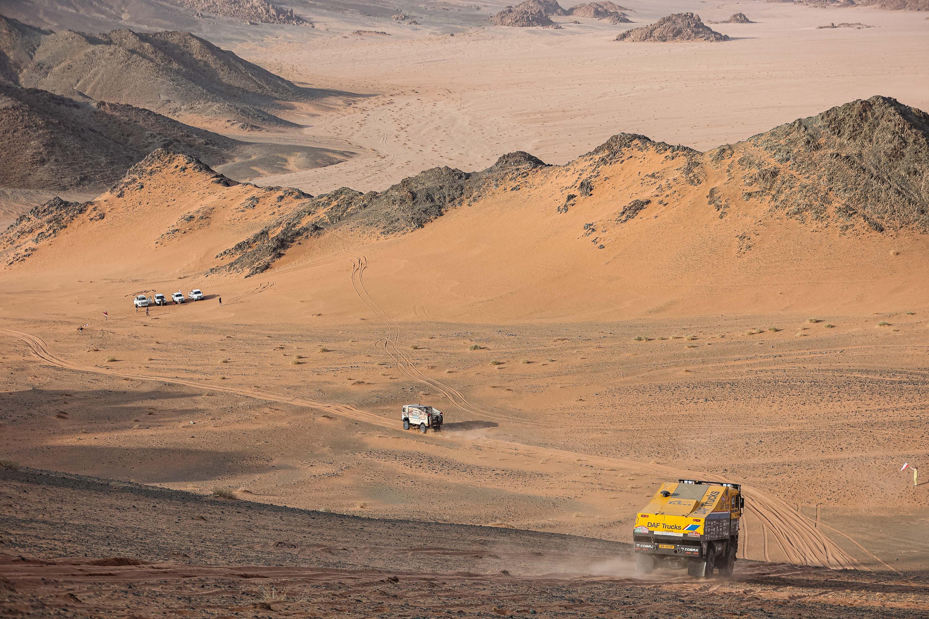 – „Jedzie się nam coraz lepiej i cały czas szukamy miejsc, w których możemy jeszcze poprawić wynik. Głównie chodzi o obsługę i pracę z urządzeniami nawigacyjnymi, tak aby jak najdokładniej trzymać zadane tempo. Dzisiejsze odcinki bardzo dobrze to pokazały. Ogromnie cieszy mnie kolejne zwycięstwo etapowe w grupie ciężarówek, a sama trasa była przepiękna – wielkie formacje skalne zasypane piaskiem i otwarte przestrzenie robiły ogromne wrażenie” – powiedział Dariusz.