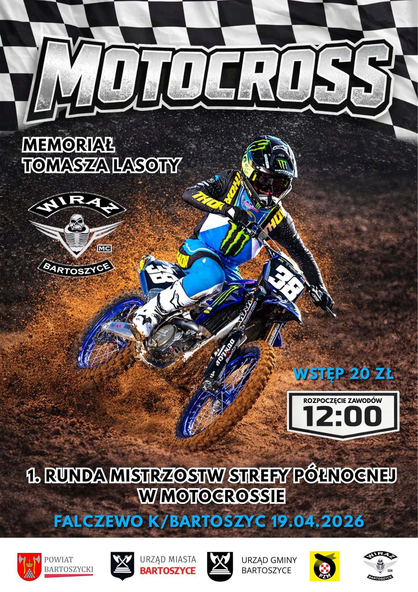 Stowarzyszenie Klub Motocyklowy WIRAŻ Bartoszyce zaprasza 19 kwietnia na I Rundę Mistrzostw Strefy Polski Północnej w Motocrossie.